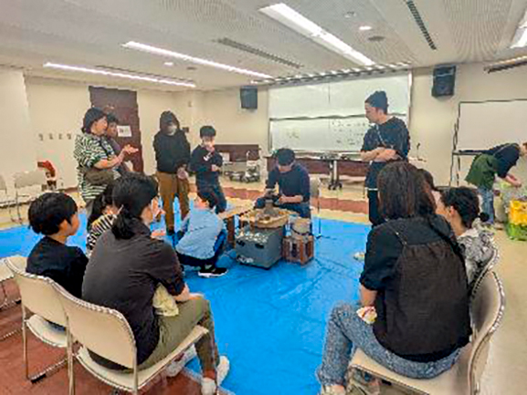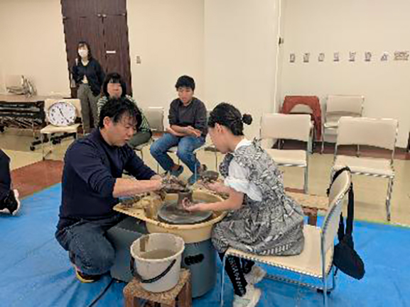 電動ろくろを用いて、親子で萬古焼体験を行いました。